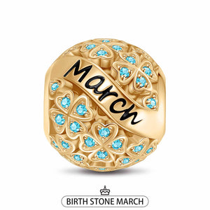 March Birthstone Tarnish-resistant Silver Charms With Enamel In 14K Gold Plated