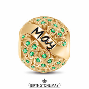 May Birthstone Tarnish-resistant Silver Charms With Enamel In 14K Gold Plated