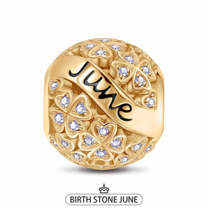 June Birthstone Tarnish-resistant Silver Charms With Enamel In 14K Gold Plated