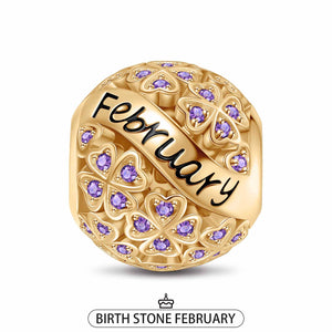 February Birthstone Tarnish-resistant Silver Charms With Enamel In 14K Gold Plated
