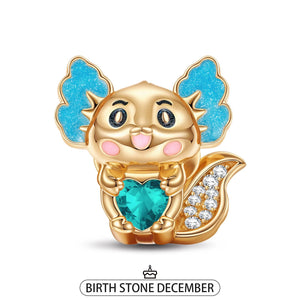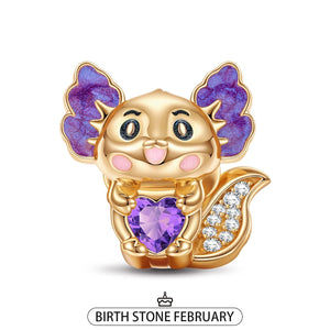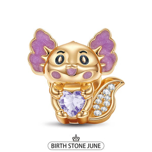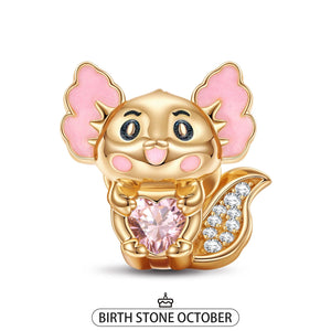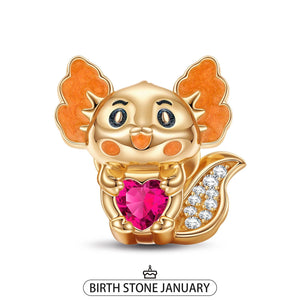 Lovely Axolotl Birthstone Tarnish-resistant Silver Charms With Enamel In 14K Gold Plated - Heartful Hugs Collection