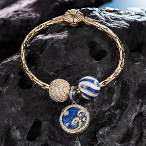 [💥As @anlena_ea's Pick] Sterling Silver Blue Ocean Waves Charms Bracelet Set With Enamel In 14K Gold Plated (Includes bracelet and all charms shown)