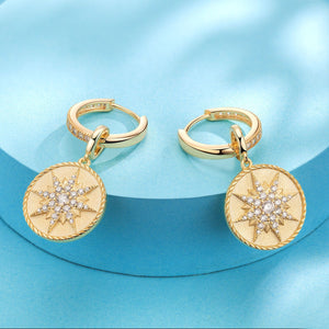 Sterling Silver Morning Star Charms Earrings Set In 14K Gold Plated