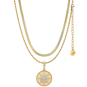 Sterling Silver Shining North Star Charms Necklace Set In 14K Gold Plated