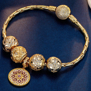 Sterling Silver Cascading Sunlight Charms Bracelet Set With Enamel In 14K Gold Plated (Includes bracelet and all charms shown)