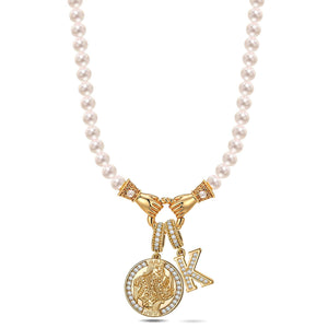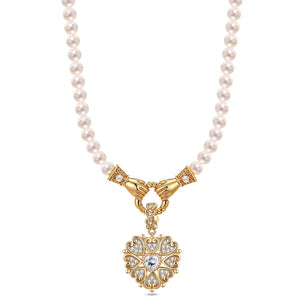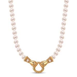 Hand In Hand Tarnish-resistant Silver Pearl Necklace In 14K Gold Plated