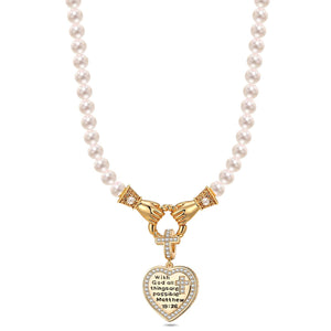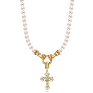 God's Cross Tarnish-resistant Silver Pearl Necklace Set In 14K Gold Plated