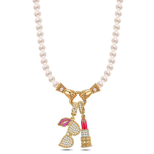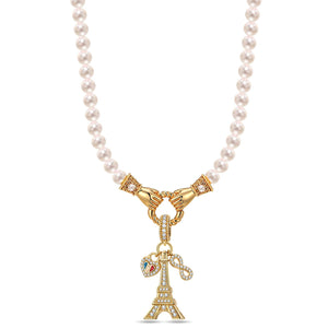 Eiffel Flair Tarnish-resistant Silver Pearl Necklace Set With Ename lIn 14K Gold Plated
