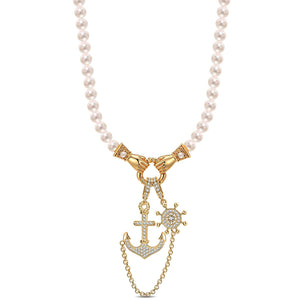 Anchor And Helm Tarnish-resistant Silver Pearl Necklace Set In 14K Gold Plated