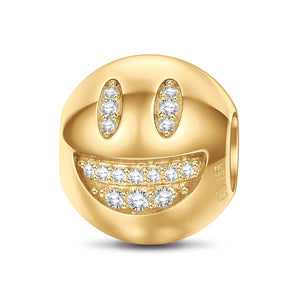 Sterling Silver Smiling With Big Eyes Emoji Charms In 14K Gold Plated