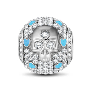 Sterling Silver Halloween & Skull Charms With Enamel In White Gold Plated