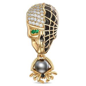Spider Skull Tarnish-resistant Silver Dangle Charms With Enamel In 14K Gold Plated