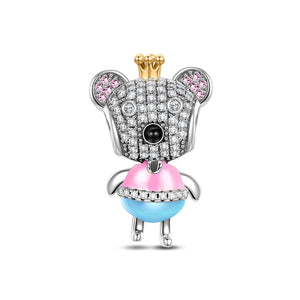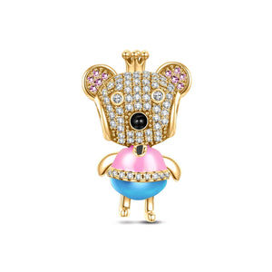 Design: Princess Bear at the ball. The intricate details and sparkling crystals add a touch of glamour, while the sweet and whimsical design captures the essence of fairytales. Let this charming princess bear charm be a reminder to always believe in magic.