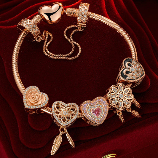 Rose Dreamcatcher Tarnish-resistant Silver Charms Bracelet Set In Rose Gold Plated (Includes bracelet and all charms shown)