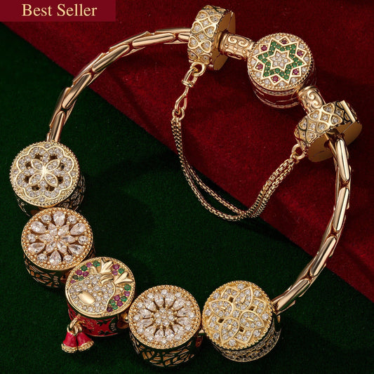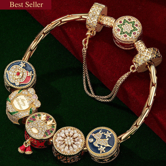 Limited Flash Sale - Sterling Silver Winter Wonderland Wishes Charms Bracelet Set With Enamel In 14K Gold Plated (Includes bracelet and all charms shown)