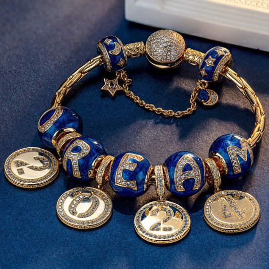 Sterling Silver Anchor of Wisdom Charms Bracelet Set With Enamel In 14K Gold Plated (Includes bracelet and all charms shown)