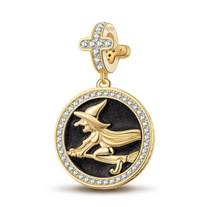 Witch On Broom Tarnish-resistant Silver Dangle Charms With Enamel In 14K Gold Plated