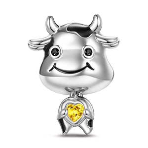 Proud Baby Cow Tarnish-resistant Silver Animal Dangle Charms In White Gold Plated - Heartful Hugs Collection