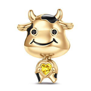 Proud Baby Cow Tarnish-resistant Silver Animal Dangle Charms In 14K Gold Plated - Heartful Hugs Collection