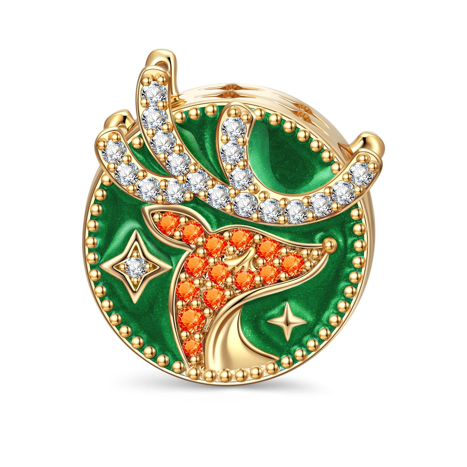 Festive Reindeer Tarnish-resistant Silver Charms With Enamel In 14K Gold Plated