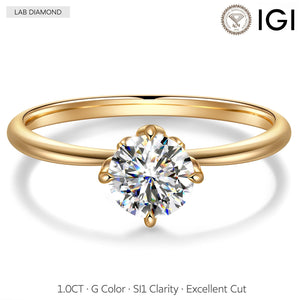 IGI Certified Lab-Grown Round Brilliant Cut Diamond - Hidden Halo Classic Engagement Ring 14K Yellow Gold Plated (Includes IGI Certification from International Gemological Institute)