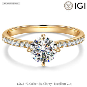 IGI Certified Lab-Grown Round Brilliant Cut Diamond - Hidden Halo Classic Engagement Ring 14K Yellow Gold Plated (Includes IGI Certification from International Gemological Institute)