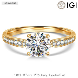 IGI Certified Lab-Grown Round Brilliant Cut Diamond - Pave Classic Engagement Ring 14K Yellow Gold Plated (Includes IGI Certification from International Gemological Institute)