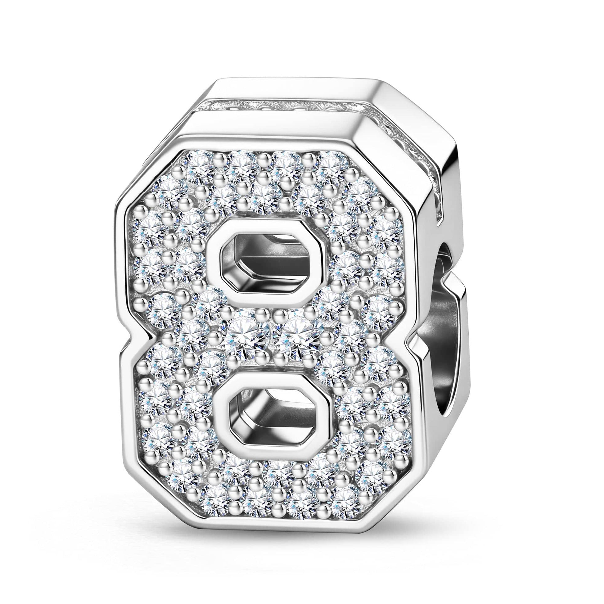 Number Eight Tarnish-resistant Silver With Enamel Charms In White Gold Plated
