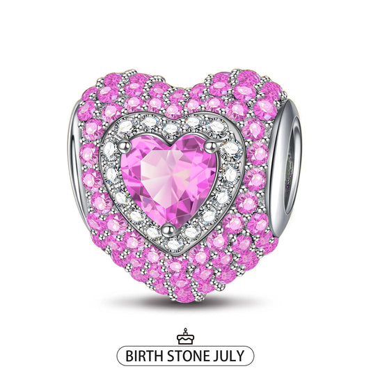 Sterling Silver Love Heart Birthstone July Charms With Enamel In White Gold Plated