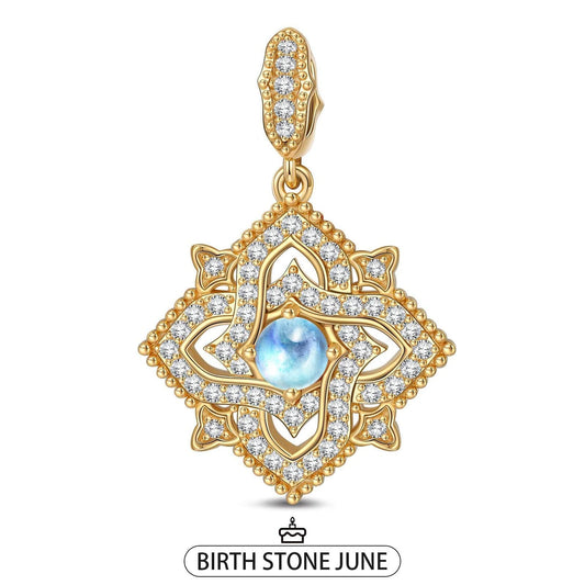 Quatrefoil Rose Moonstone June Birthstone Tarnish-resistant Silver Dangle Charms In 14K Gold Plated