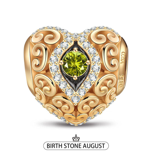August Golden Love Heart Birthstone Tarnish-resistant Silver Charms In 14K Gold Plated