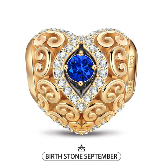 September Golden Love Heart Birthstone Tarnish-resistant Silver Charms In 14K Gold Plated
