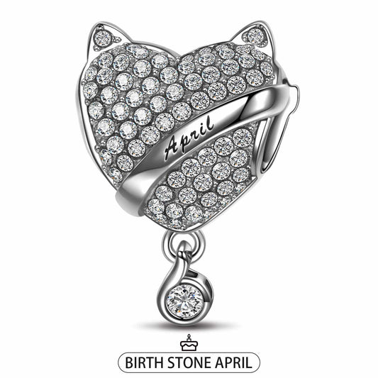 Sterling Silver April Fox Birthday Stone Dangle Charms In White Gold Plated