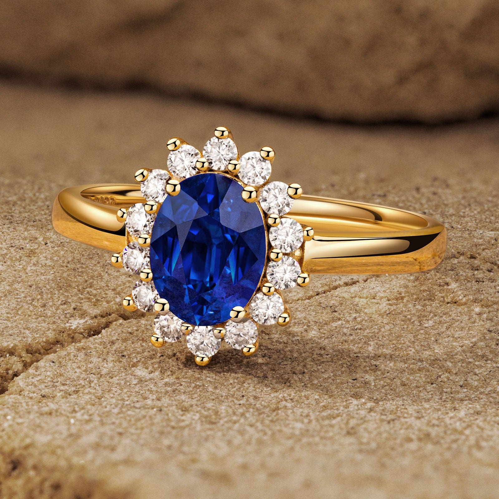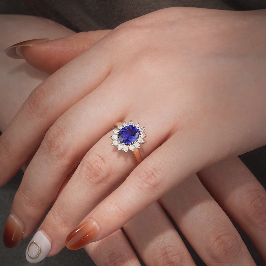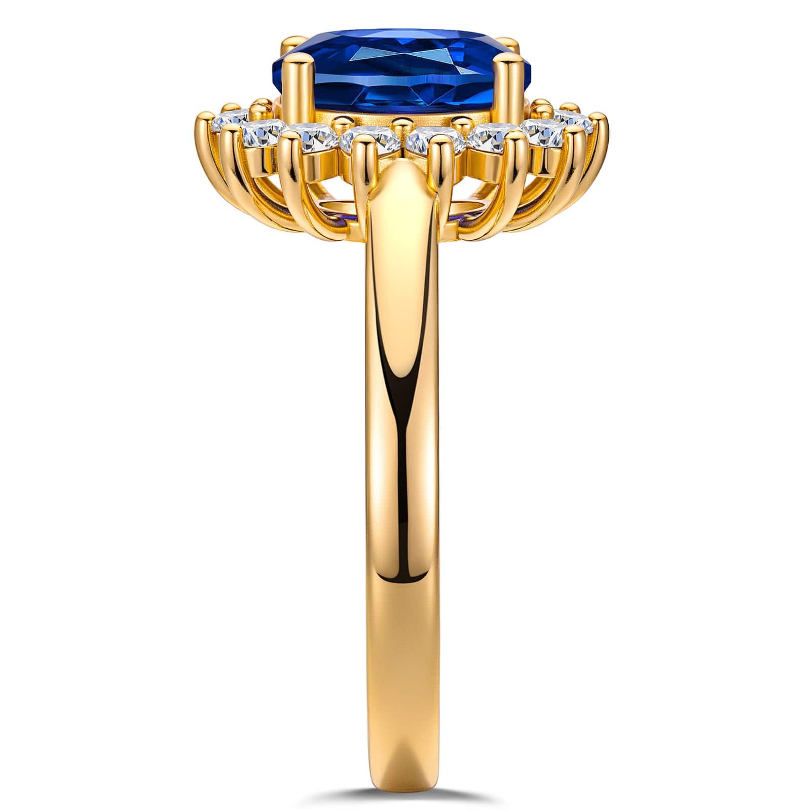 Oval Brilliant Cut Royal Blue Hue Lab-Certified Blue Sapphire - Halo Classic Engagement Ring 14K Yellow Gold Plated (Includes GRC Certification from Gemstone Research Center)