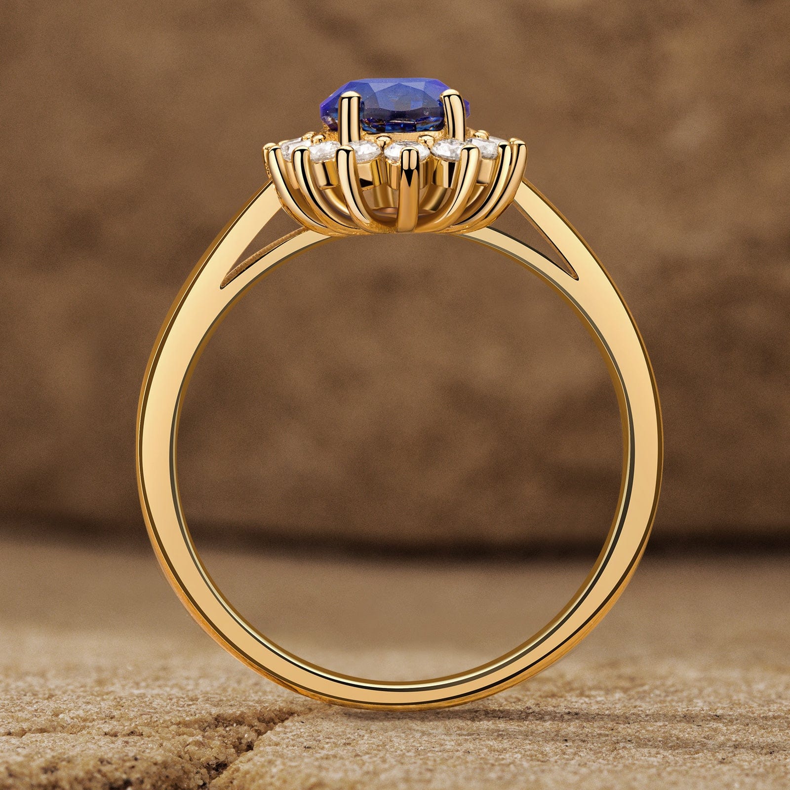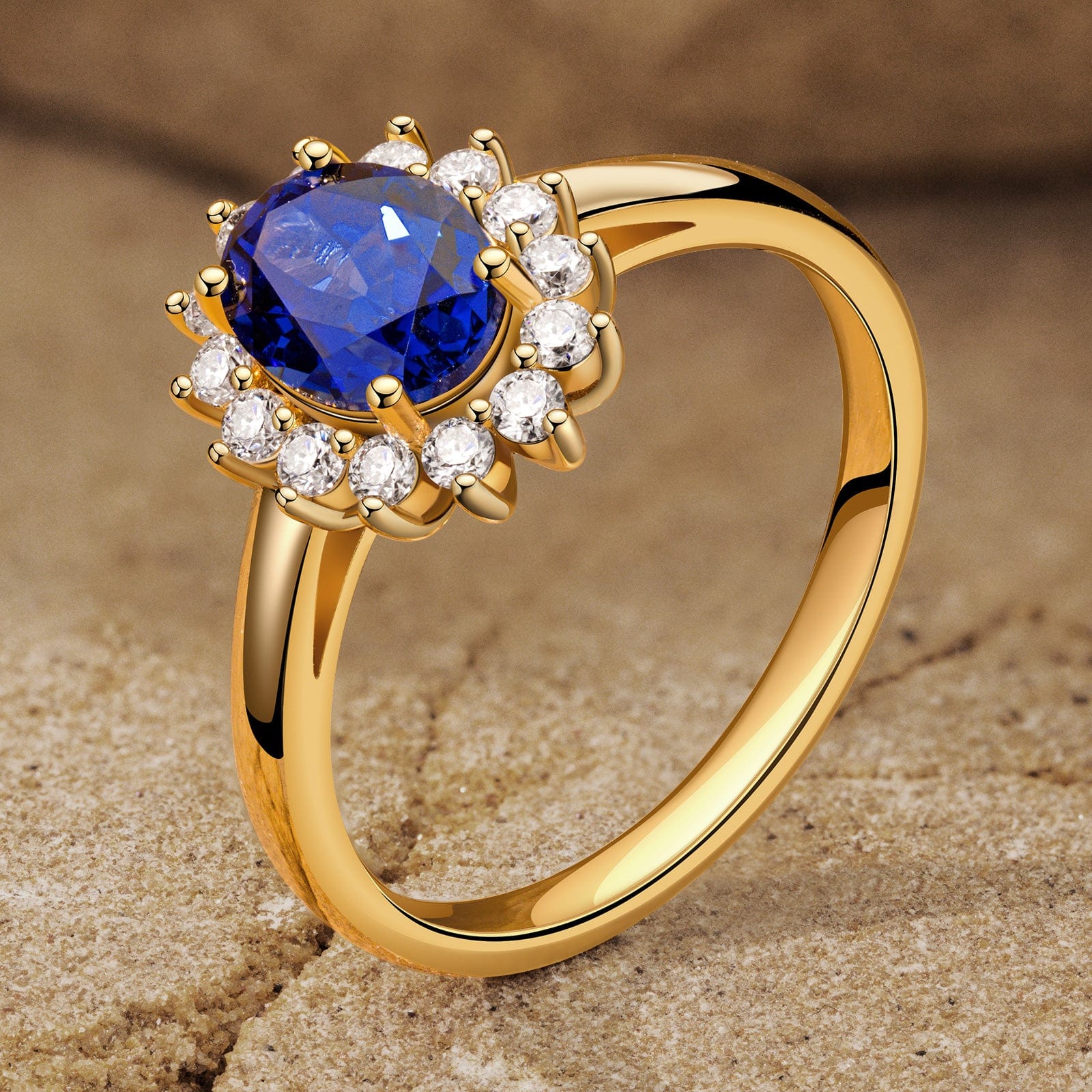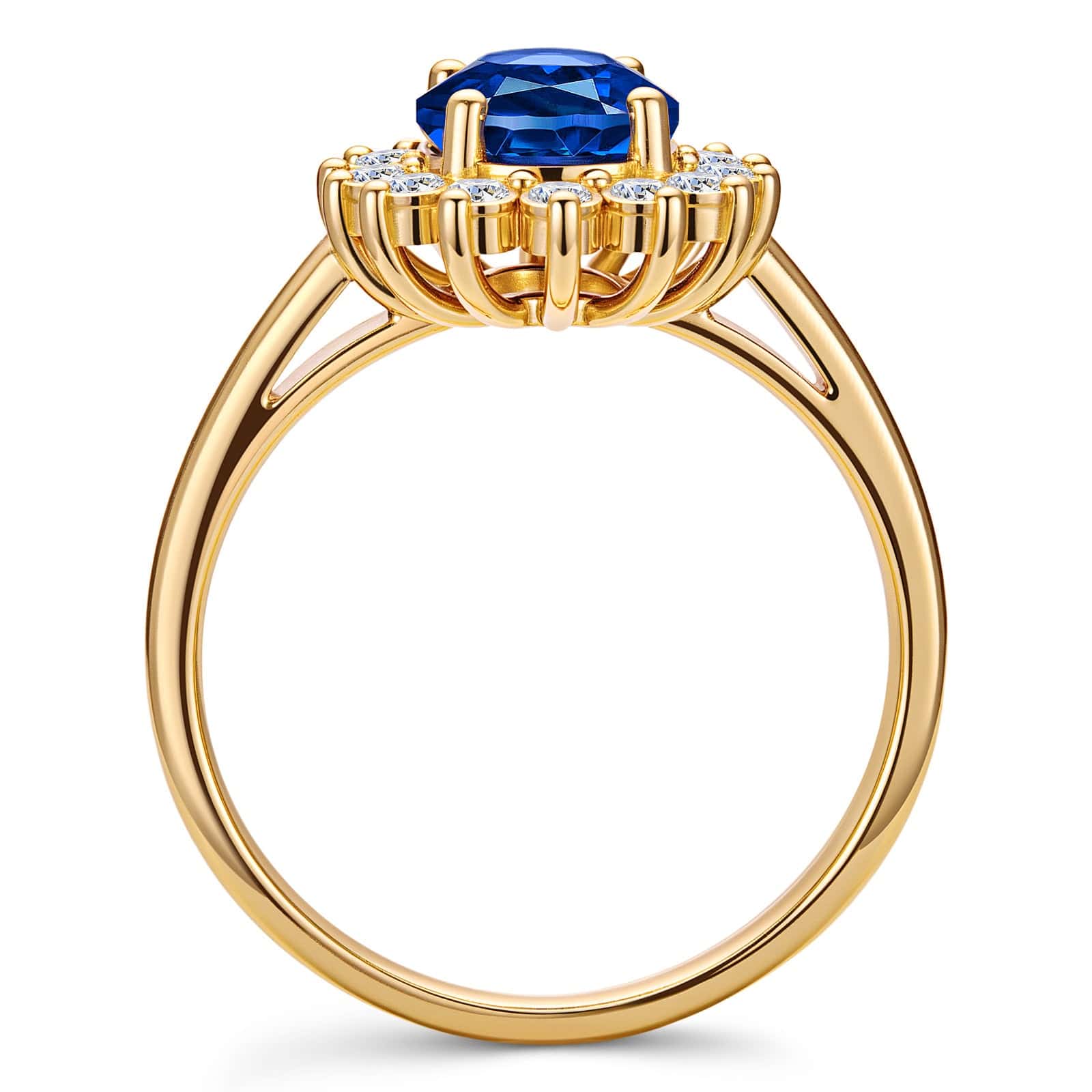 Oval Brilliant Cut Royal Blue Hue Lab-Certified Blue Sapphire - Halo Classic Engagement Ring 14K Yellow Gold Plated (Includes GRC Certification from Gemstone Research Center)