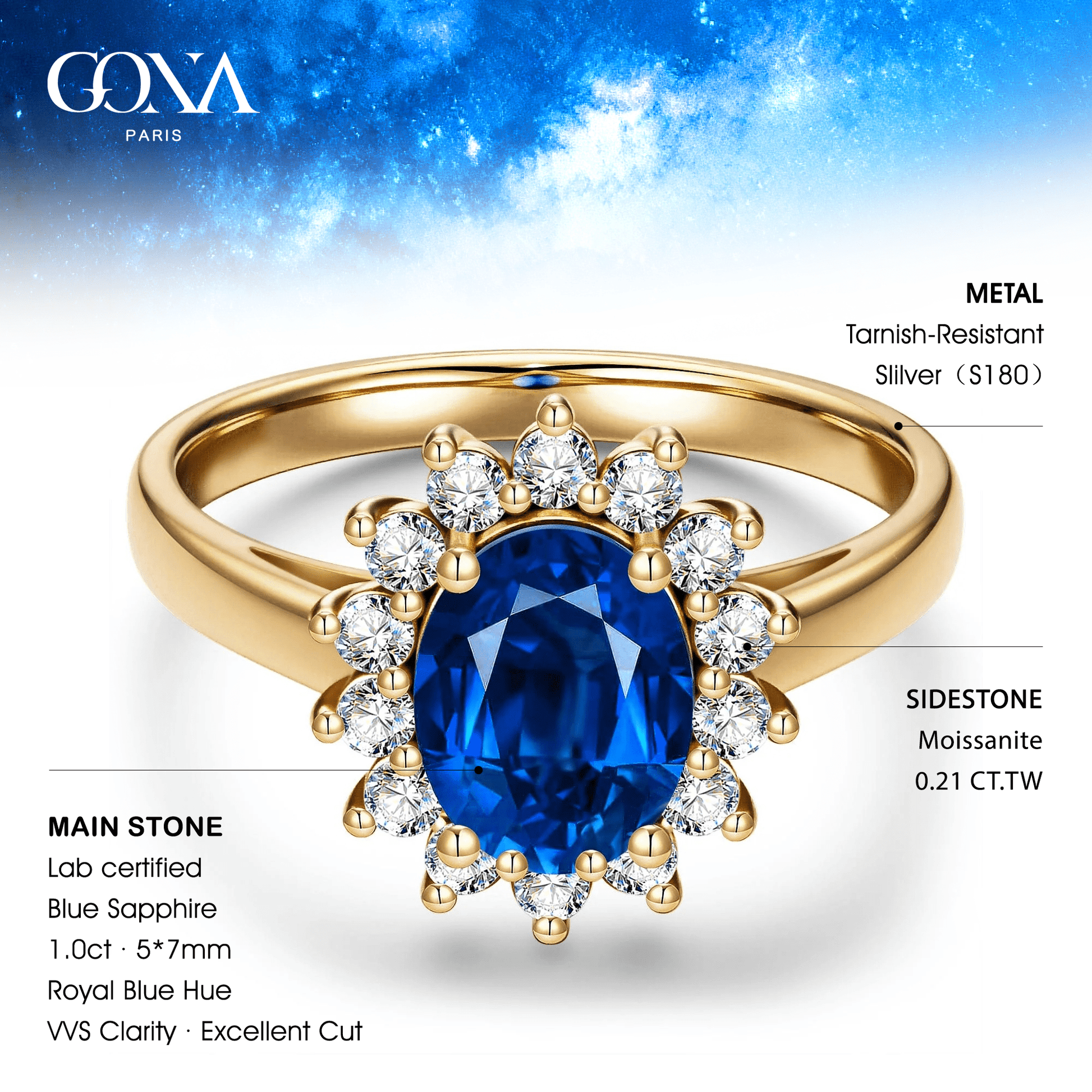 Main Stone:Lab-Certified Blue Sapphire