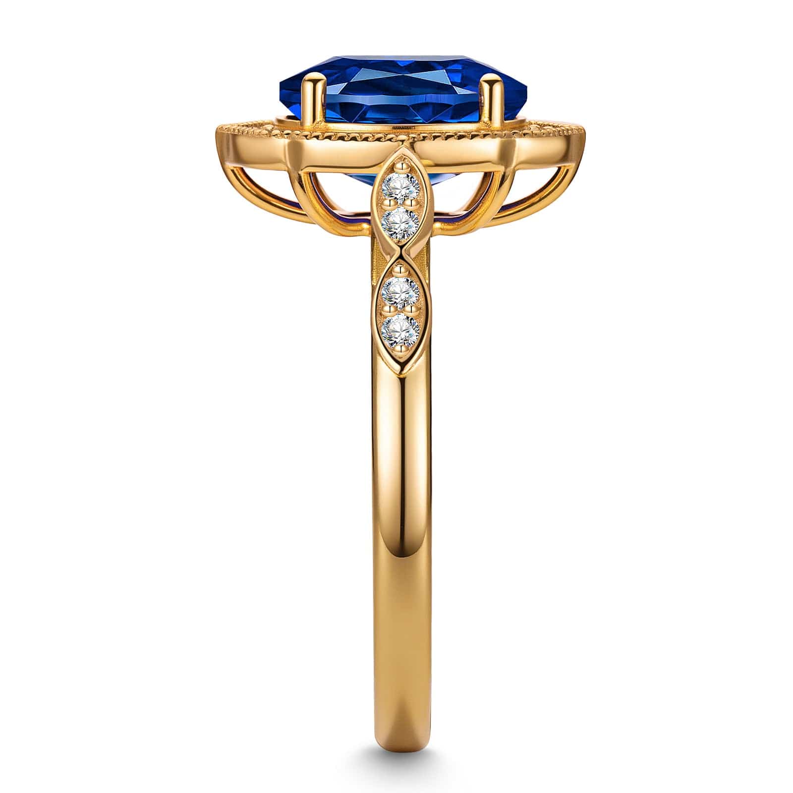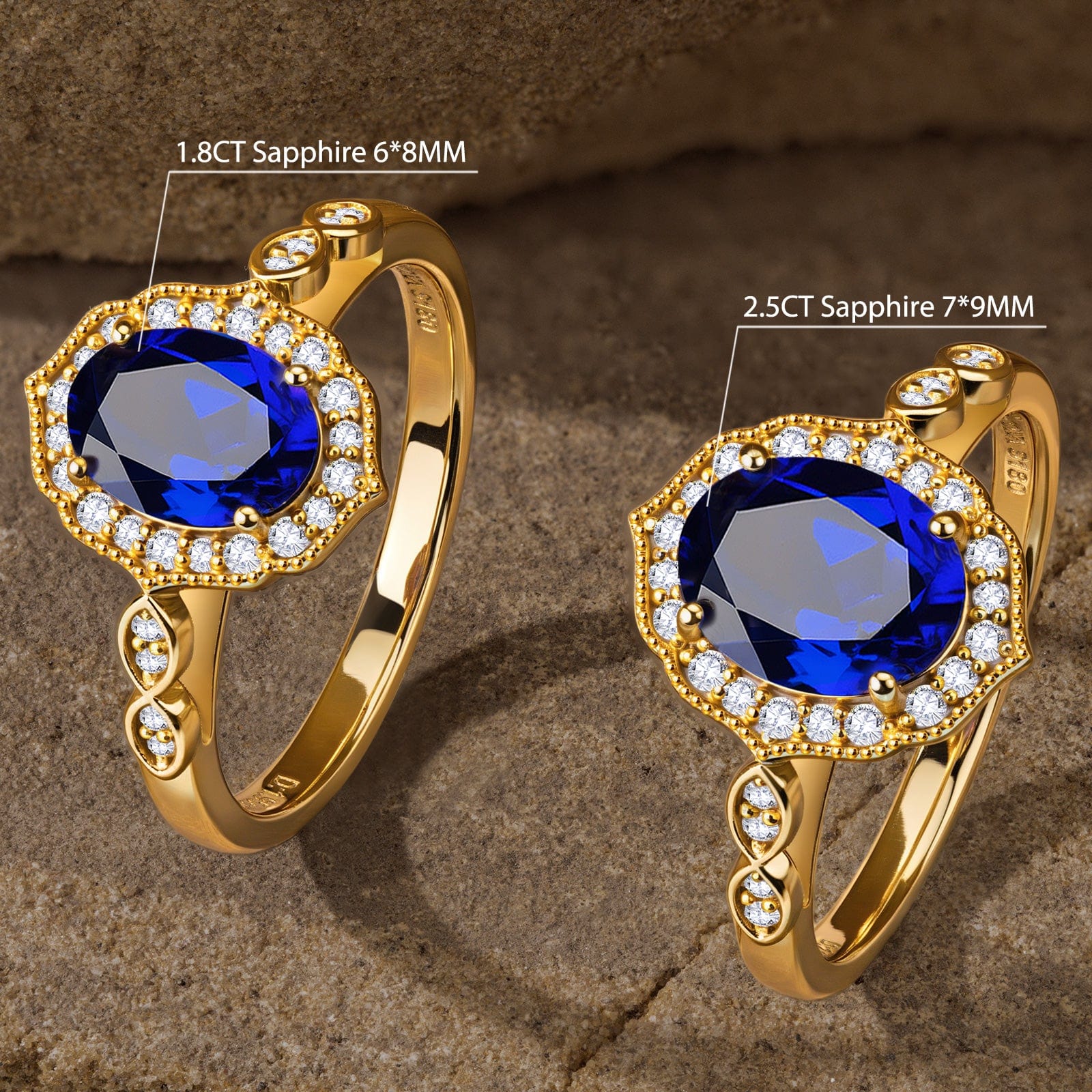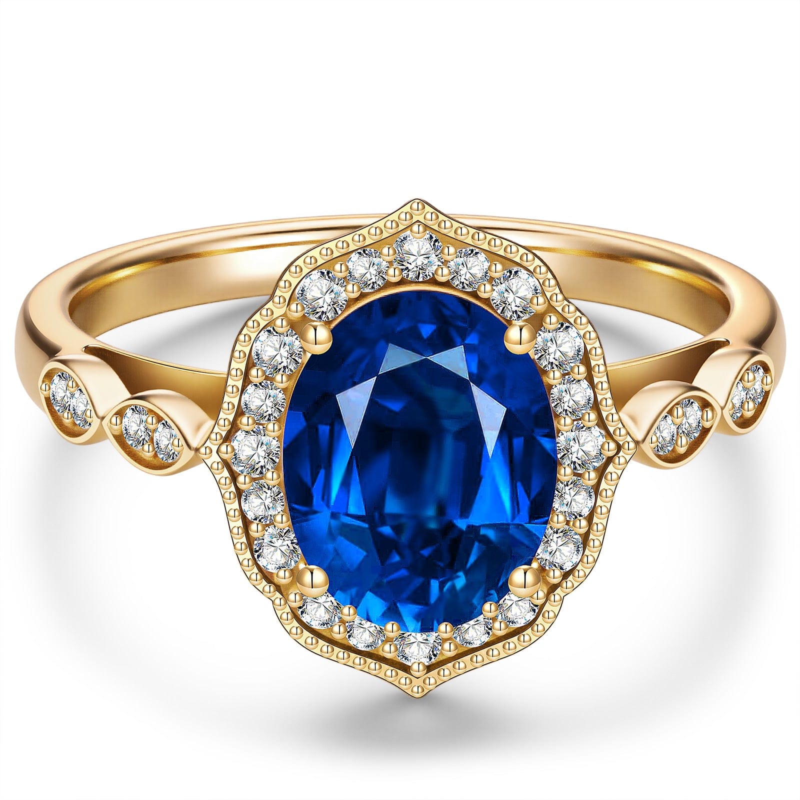 Oval Brilliant Cut Royal Blue Hue Lab-Certified Blue Sapphire - Halo Classic Engagement Ring 14K Yellow Gold Plated (Includes GRC Certification from Gemstone Research Center)