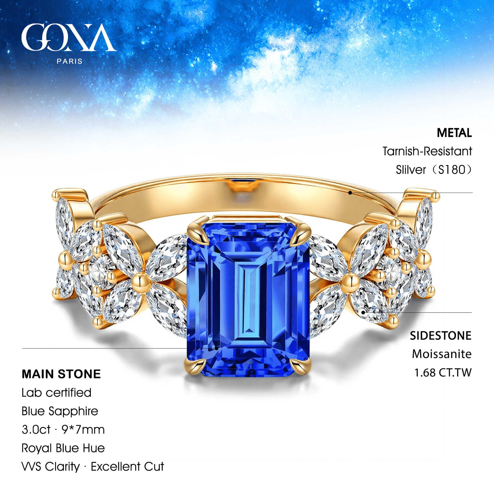 • No. of Emerald-Cut Lab-Certified Blue Sapphire1