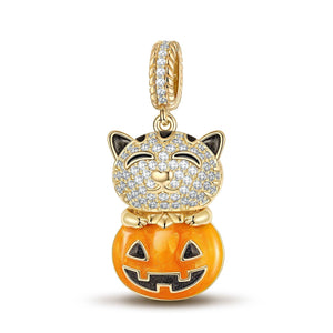 Cute Pumpkin Cat Tarnish-resistant Silver Dangle Charms With Enamel In 14K Gold Plated