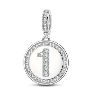 Number One Tarnish-resistant Silver Dangle Charms In White Gold Plated