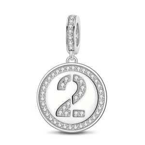 Number Two Tarnish-resistant Silver Dangle Charms In White Gold Plated