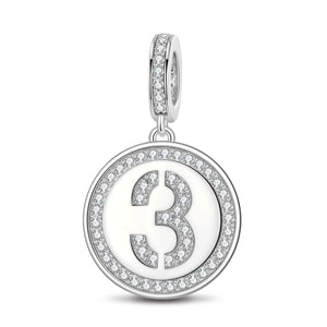 Number Three Tarnish-resistant Silver Dangle Charms In White Gold Plated
