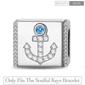 Sterling Silver Anchor Rectangular Charms In White Gold Plated