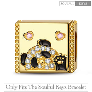 Endearing Panda Tarnish-resistant Silver Rectangular Charms With Enamel In 14K Gold Plated