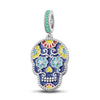 Sterling Silver Skull and Colorful Rose Dangle Charms With Enamel In White Gold Plated