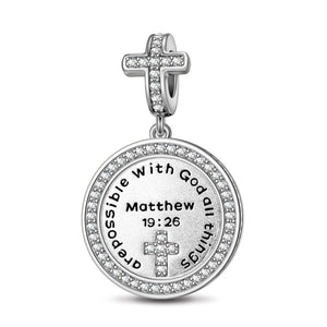Design: The inscription reads: with God all things are possible matthew; combined with the heart shape and the cross element; God's welfare, we will always be engraved in our hearts; expressing the belief in God, we can facilitate God's presence and the light of God will become our own amulet.