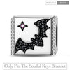 Sterling Silver Flapping Bat Rectangular Charms In White Gold Plated