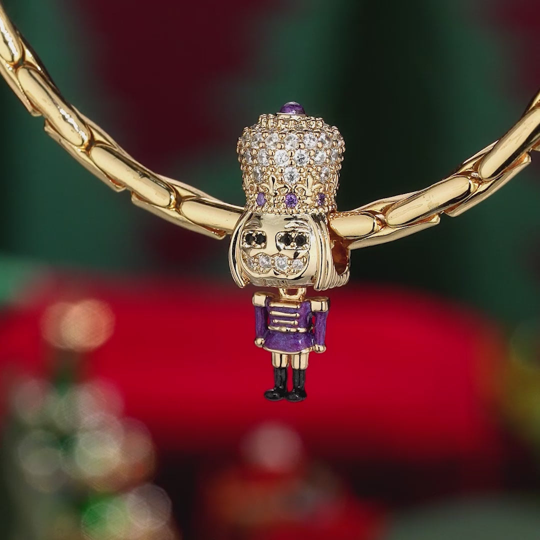 Purple Nutcrackers Tarnish-resistant Silver Charms With Enamel In 14K Gold Plated