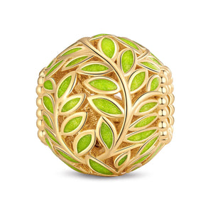 Olive Leaf Tarnish-resistant Silver Charms With Enamel In 14K Gold Plated