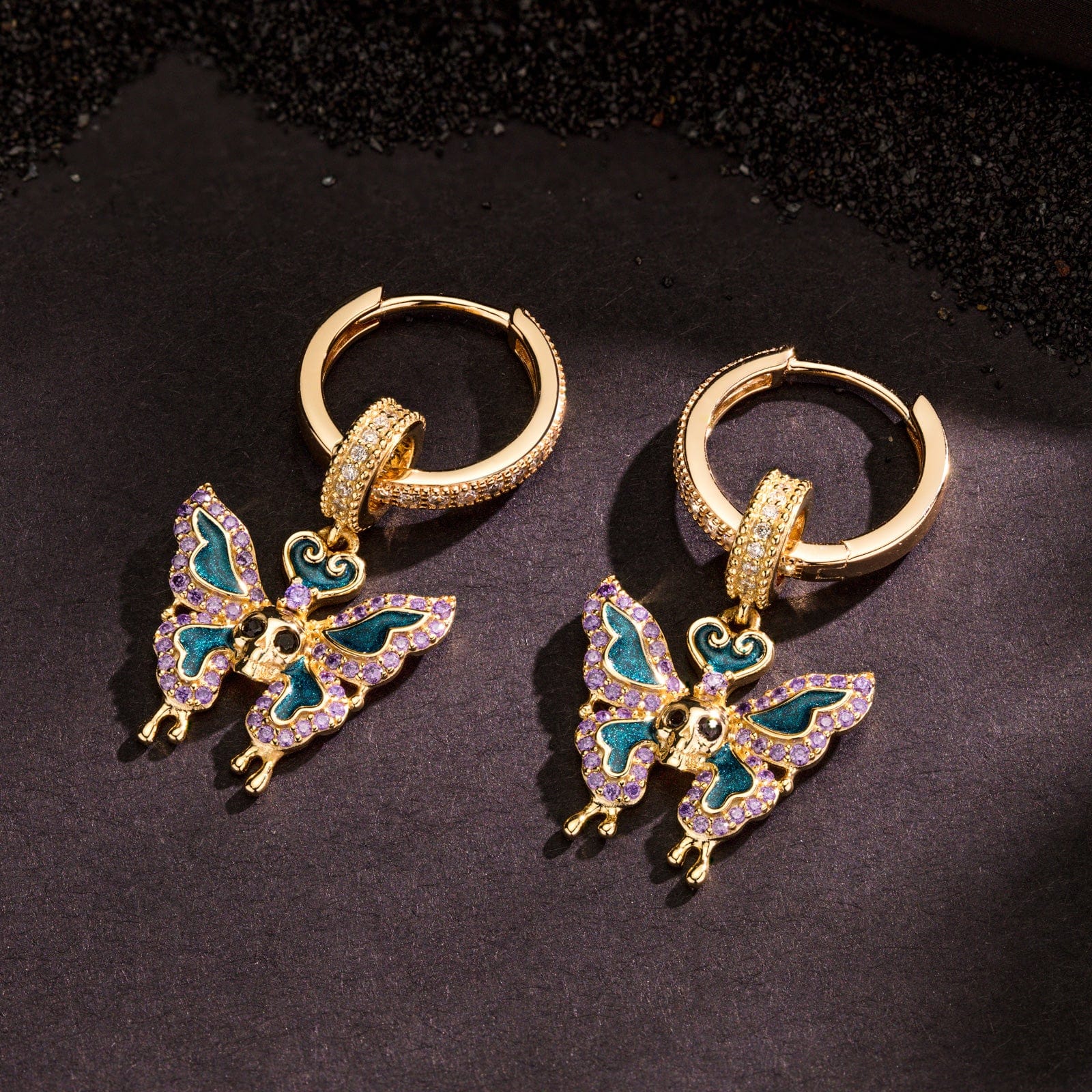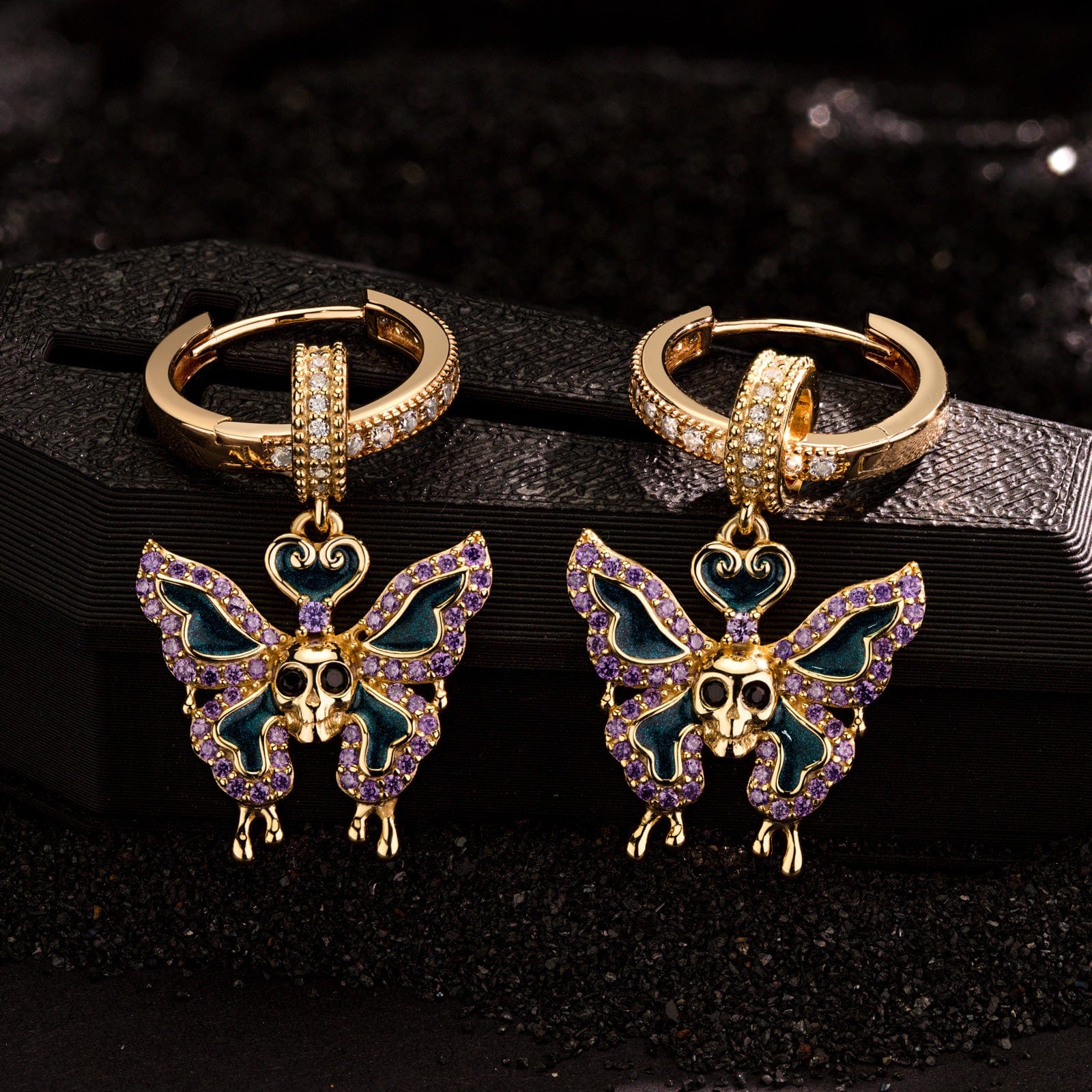 Sterling Silver Macabre Monarch Charms Earrings Set With Enamel In 14K Gold Plated